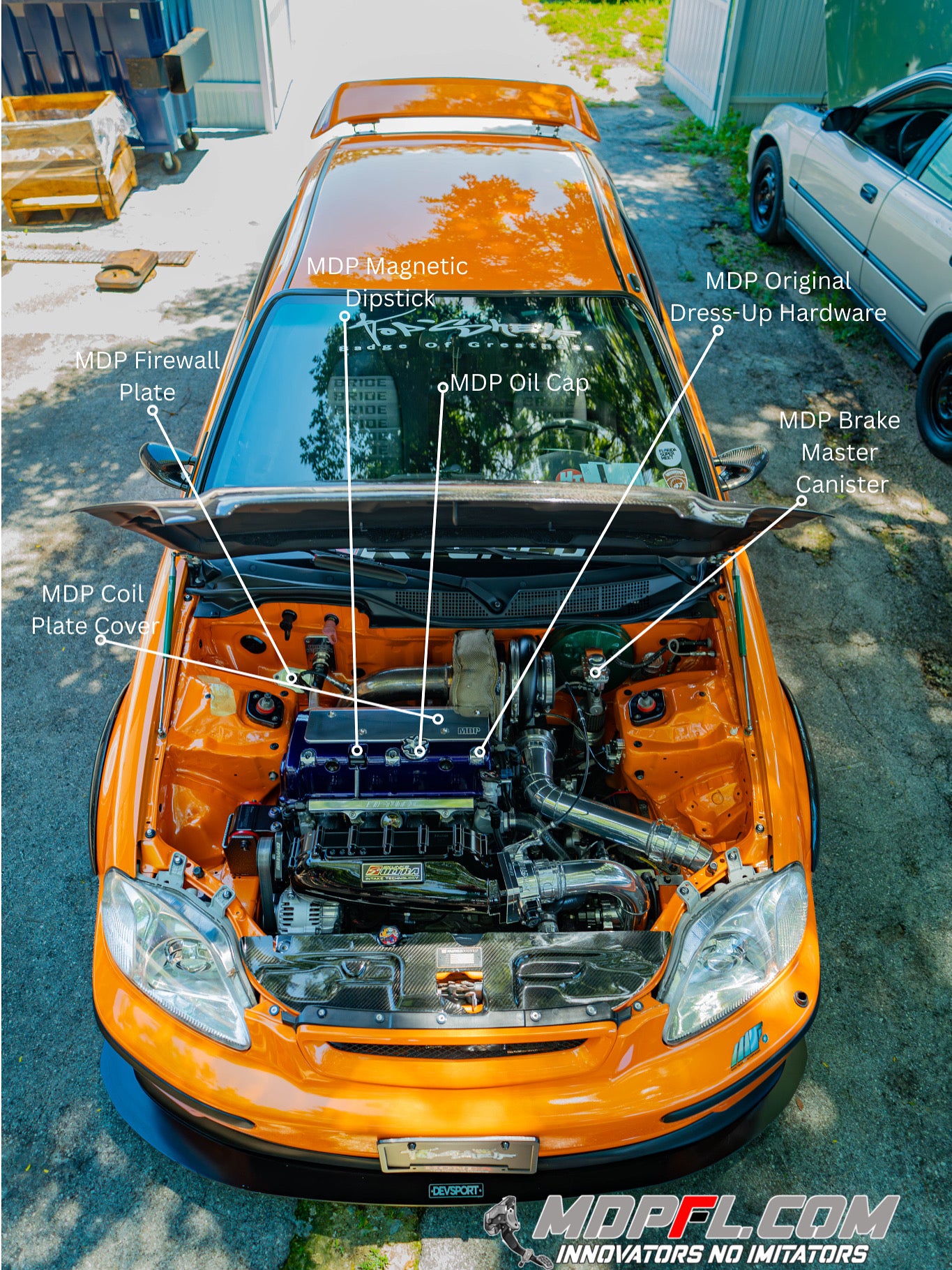 MDP is all about high-quality, innovative engine bay aesthetics and performance parts for Honda and Acura enthusiasts. We specialize in billet aluminum accessories, custom fabrication, and unique upgrades designed to enhance both form and function. Our mission is simple: to provide top-tier products that stand out in quality, originality, and design.