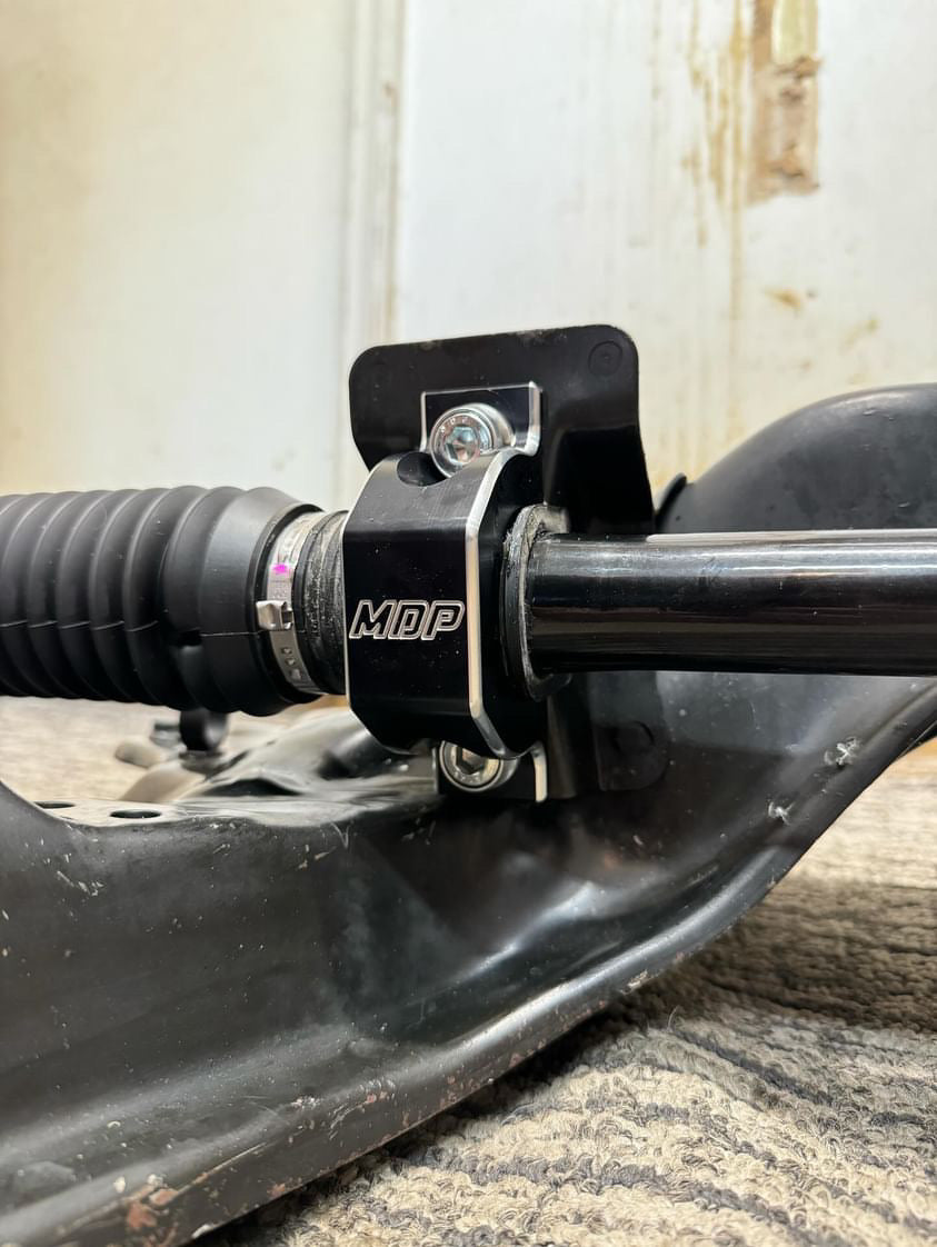 Eliminate steering play and movement with the MDP Rack & Pinion Bracket. Designed to secure your rack & pinion in place, this upgrade prevents shifting under load, ensuring tighter steering response and better handling.