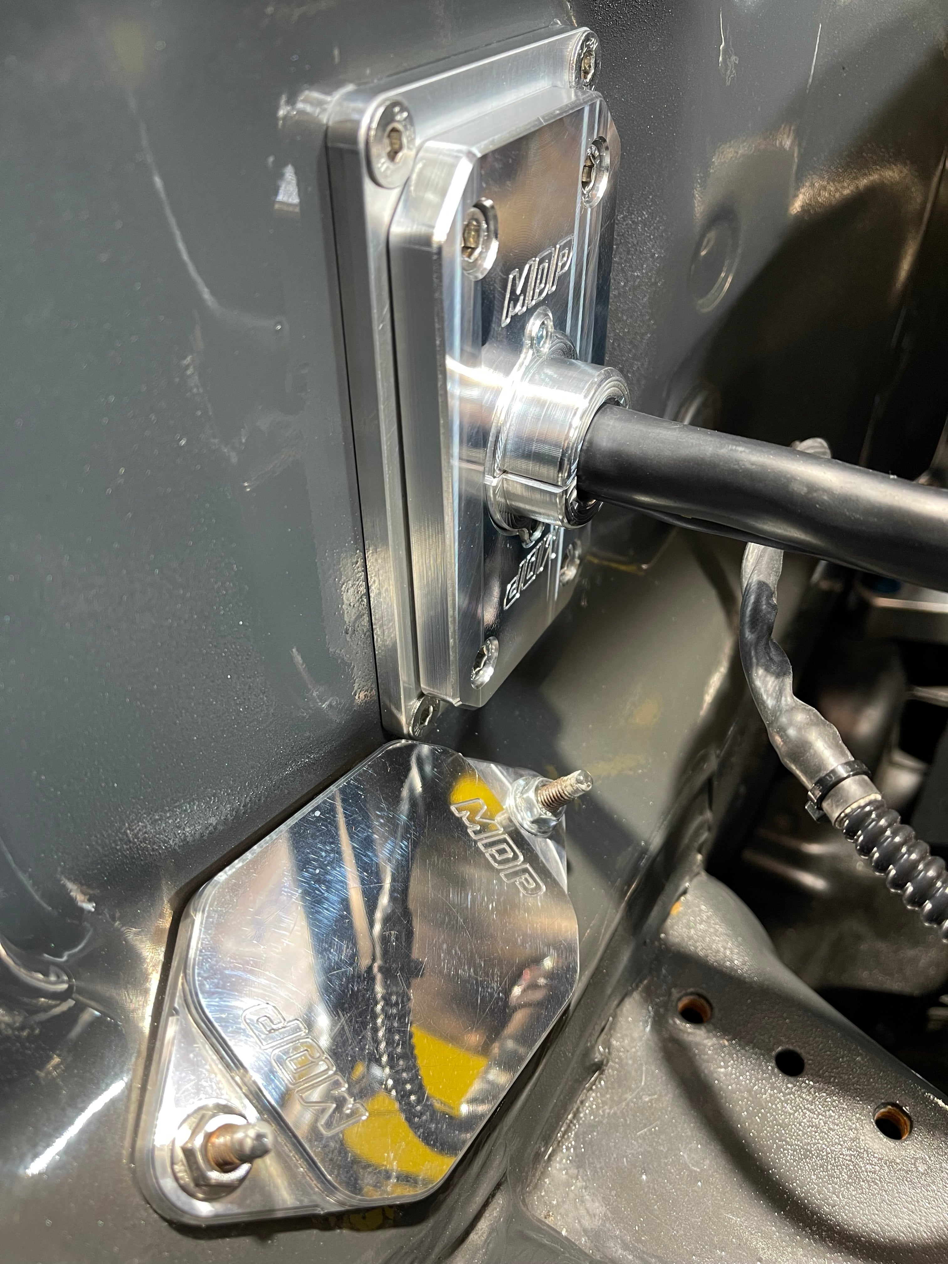 Keep your wiring safe and your engine bay clean. This billet aluminum plate seals the firewall, preventing water, dirt, and debris from entering while providing a perfect pass-through for your harness.
