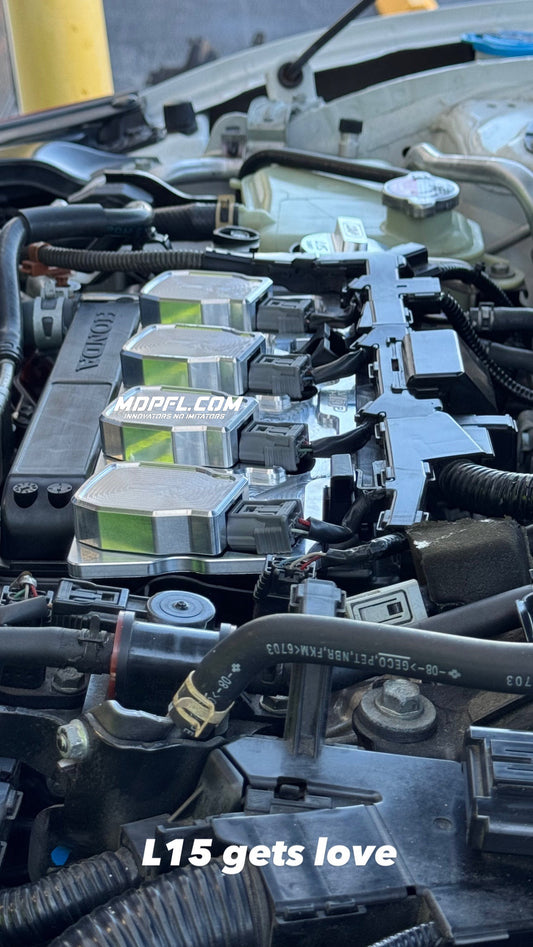This collection includes must-have upgrades for your 1.5L Civic, starting with our Valve Cover Dress-Up Kit—featuring the Coil Plate, Coil Covers, and Oil Cap—along with our Valve Cover Dress-Up Hardware that adds the perfect finishing touch around your valve cover. We also offer the High-Pressure Fuel Line Cover and Shock Tower Trim Plates to complete the look.